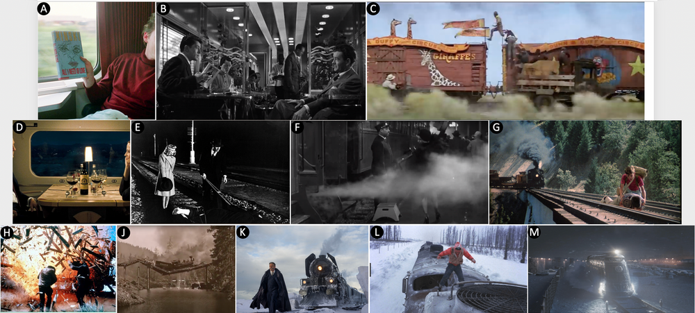 12 Eisenbahnszenen aus der Filmgeschichte (und ich freue mich auch darauf, wieder vermehrt Zug zu fahren). Wer kann die Filme erraten? (den Buchstaben I habe ich vergessen, den gibt's nicht)